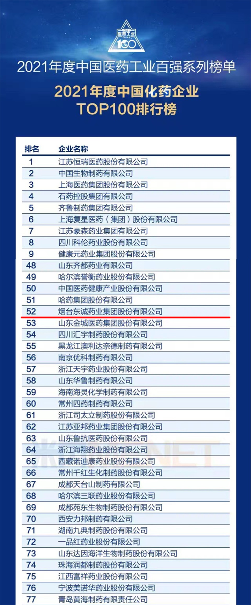 新聞中心7月12日,2022米思會(中國醫(yī)藥健康產(chǎn)業(yè)共生大會)在浙江湖州隆重召開,會上發(fā)布了中國醫(yī)藥工業(yè)百強系列榜單。東誠藥業(yè)再度榮登中國化藥企業(yè)TOP100排行榜,位列第52位,這也是公司第5次榮登該榜單。